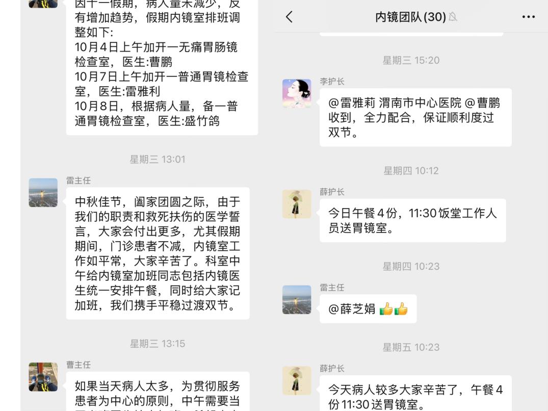 双节期间,聚餐聚会频繁,饮食结构改变,加之许多市民利用假期进行常规检查或处理积压的健康问题,导致消化内镜中心的咨询电话持续火爆,检查需求激增。面对这一情况,消化内科主任雷雅莉、内镜中心副主任曹鹏第一时间启动应急预案,确保医疗工作有序、高效开展。