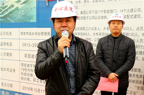 封顶仪式由医院基建办科长巩文明主持,院长张进社做了热情洋溢的致辞,对长期以来关心、重视、支持我院工程建设的相关部门、施工企业、监理公司,尤其是日夜奋战在工地上的建设者们表示了衷心的感谢,并指出感染病区综合楼的顺利封顶标志着项目取得阶段性胜利,希望全体单位进一步严把质量关,加强安全管理,确保这个重大项目、民生工程如期竣工,再创医院新辉煌。仪式最后,由院党委书记鲁海燕宣布了我院感染病区综合楼封顶开始。