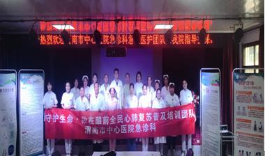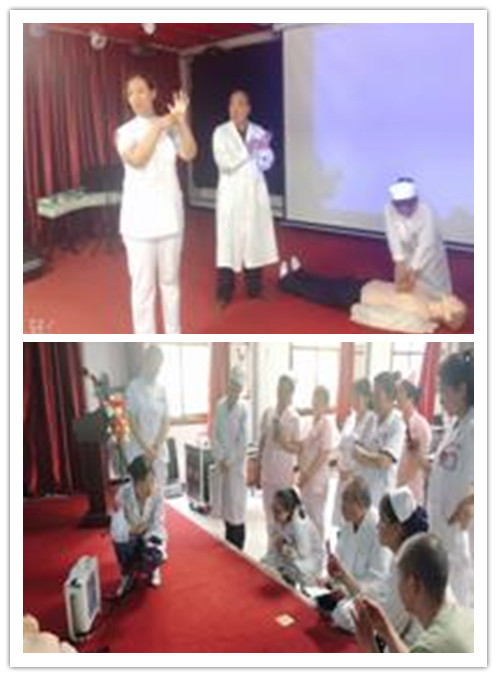 急诊科张娟红护士长为大家详细讲解心肺复苏操作的步骤及重点,吴新苗护士为大家演示;王二宁医师及穆晓红护士长对大家进行了心肺复苏及电除颤现场操作指导,使每位基层医护人员都能够准确掌握心肺复苏、电除颤。同时吴新苗护士为大家讲解了气道异物哽阻的急救方法(海姆立克急救法),董小萍、卜雨莎护士为大家演示,使大家在抢救患者的黄金时间,能够利用正确的急救知识及技能实施有效救治。
