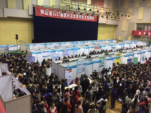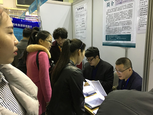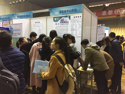 3月23日,陕西省2017届春季医药卫生类毕业生招聘会在西安交通大学505体育馆举行。作为陕西东部唯一一所三级甲等综合医院和市直医疗部门唯一参加招聘会的单位,我院以良好的环境、有利的条件、诱人的岗位,吸引数百名学生报名咨询。