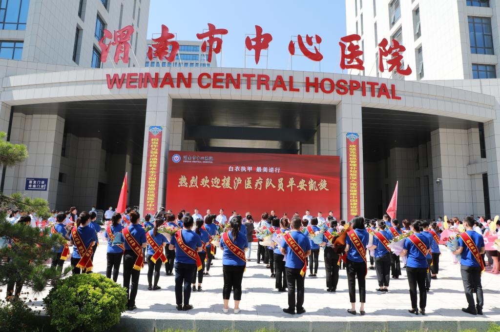 白衣勇士,慷慨援沪;艳阳高照,英雄凯旋。6月14日,渭南市中心医院举行援沪医疗队凯旋欢迎仪式,迎接医院51名援沪队员平安回家。市卫健委、市总工会相关领导,医院领导班子成员,各科室负责人、援沪队员百余人参加活动。