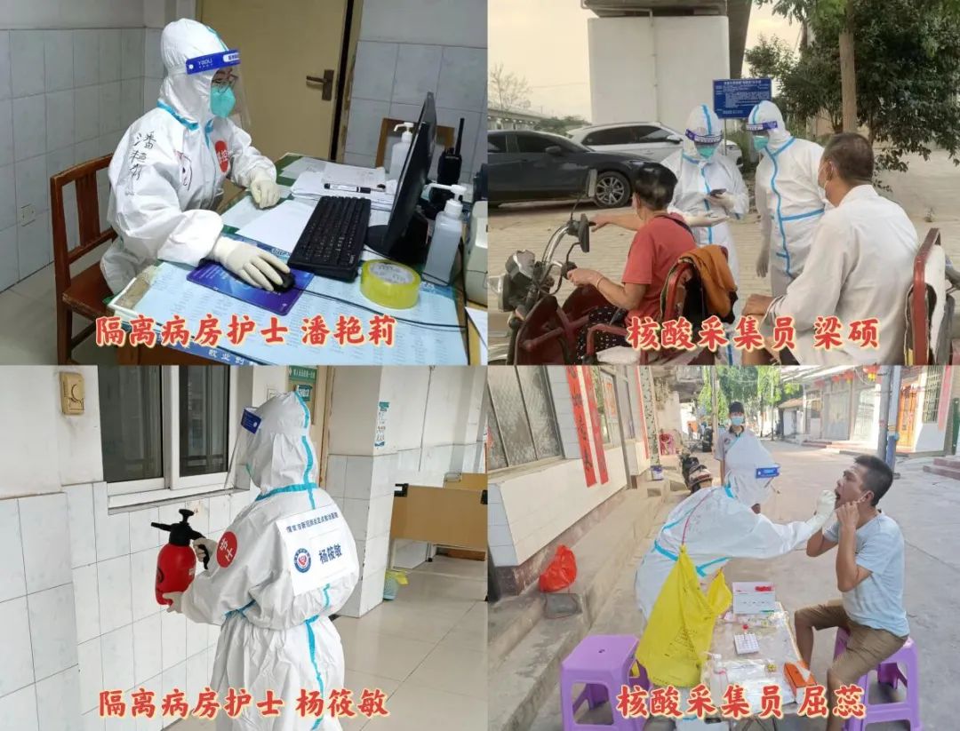 疫情中,科室的每个人都在为抗击这场疫情做斗争,每一处都有大家奋战的身影。主管护师任英、杨筱敏,护师潘艳莉三人坚守病房,夜以继日奋战在抗击疫情一线。屈蕊、杨洋、郭婉、梁硕四人起早贪黑,积极做好核酸采集工作,所有人都坚守自己阵地,奋战在平凡的岗位上。