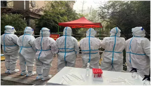 2021年12月29日晚23时,值夜班的我接到医院电话,驰援西安。30日早6时,由我们渭南市中心医院30人组成的采样队踏上了前往西安的征程。上午9时,我们抵达西安市长安区第一个战场一一国色天香小区。没有过多的话语,立刻投入工作之中。凡事预则立不预则废,采样队身处战疫第一线,不仅要做好采样,也要做好自我防护,更要做好消杀工作。我们认真穿好防护服,相互检查,杜绝采样漏洞,每做采样一次就要消毒一次,七八个小时下来,手要消毒几百次,手变得通红僵硬,不听使唤,采样队员们互相打气,没有一人喊苦喊累,在核酸采集的战场上,每个人都是坚强的战士。没有固定工作地点,没有固定工作时间,没有固定吃饭时间,每天接到任务立即出发,其中的艰难和疲累似乎都忘记了,留在大家记忆深处的只有市民们感激的话语、配合的姿态以及长安韦曲南街某小区14楼住户----一位老爷爷为我们竖起的大拇指,这是我们逆行战疫的动力之源。还有来自医院的温暖,领导不断叮咛,衣服穿厚些,做好防护,注意劳逸结合。