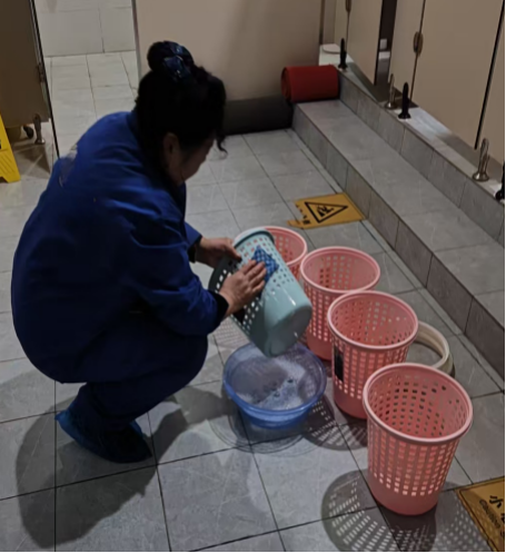 每逢周末,在科室委员会提前安排与保洁人员细致作业下,覆盖全区域的深度清洁工作会如期开展。从门头外墙除尘养护、墙面天花板蛛网清理,到卫生间死角彻底刷洗、门把手及地面全面消毒,再到设备表面擦拭与缝隙清洁,每个角落均被纳入清洁范围,确保全覆盖、无死角。