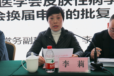 渭南市医学会常务副秘书长李莉宣布同意渭南市医学会皮肤性病学专业委员会换届申请的批复。