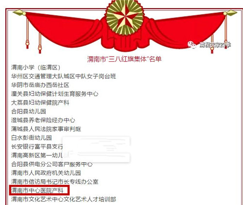 渭南市中心医院产科荣获渭南市“三八红旗集体”荣誉称号