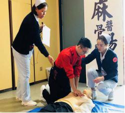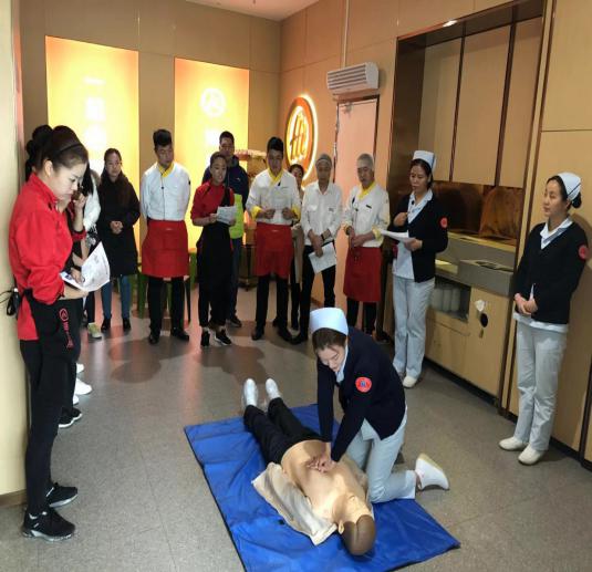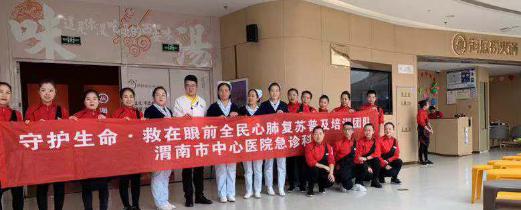 2019 年3月6日,渭南市中心医院急诊科护士长穆晓红、张娟红一行6人组成的心肺复苏专业团队以“守护生命、救在眼前”为主题,走进渭南市万达海底捞火锅店,向海底捞工作人员进行心肺复苏操作培训,向他们传递“人人学会急救、处处保护安危”的观念,提高火锅店工作人员的急救意识以及工作中出现紧急情况时的应急能力。