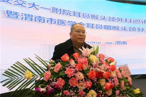 渭南市中心医院主管院长焦建雄致欢迎词,感谢西安交通大学第一附属医院及该院耳鼻咽喉头颈外科长期以来对我院的关心和支持,相信此次会议必将对渭南周边区域耳鼻咽喉头颈外科疾病诊疗有积极而重大的影响。
