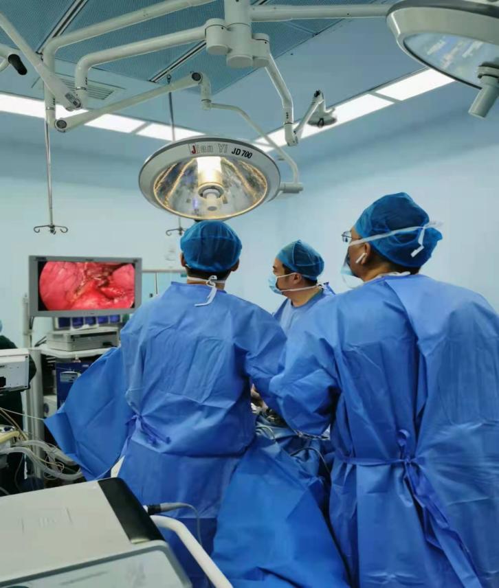 近日,渭南市中心医院肿瘤外科二病区完成全市首例自主胸腔镜经剑突肋缘三孔式胸腺瘤切除术。