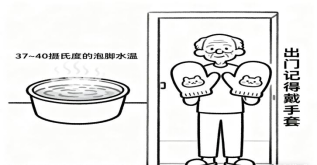 (2)别让手足受冷热刺激:禁止用凉水洗手,泡脚水温控制在37-40℃,避免局部皮肤受压或冷热刺激。出门时注意保暖,戴手套,穿袜子,防止冻伤和烫伤。