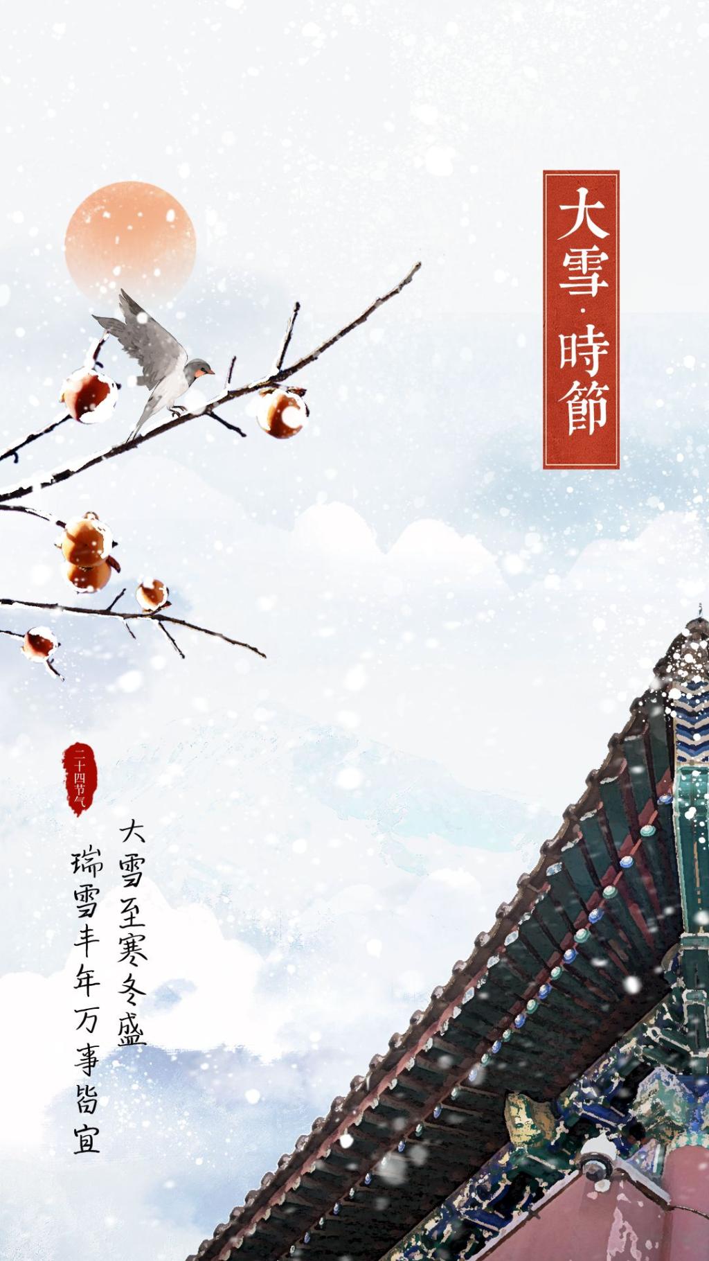 大雪,是二十四节气中的第21个节气,也是冬季的第三个节气。大雪,斗指癸,太阳到达黄经255度,交节时间为每年公历12月6—8日。大雪和小雪、雨水、谷雨、小满等节气一样,都是直接反映降水的节气。